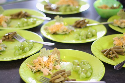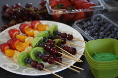 Our fun themed lunch and snack today: Shamrock chicken avocado nachos with green beans and green grapes, and rainbow fruit kabobs with green yogurt for dipping. We also worked on coloring our big rainbow and had fun noticing some of those sneaky leprechaun's tricks, like the fact that they turned all of our milk green! :)